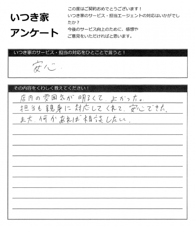 担当にも親切に対応してくれて安心できた。
